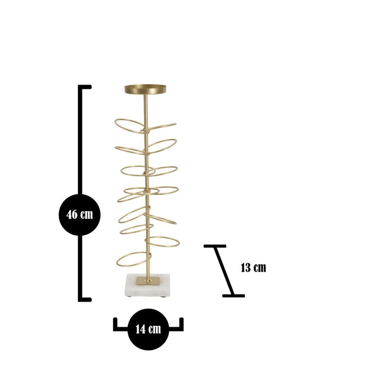 Candelabro moderno dorado con base de mármol y líneas limpias