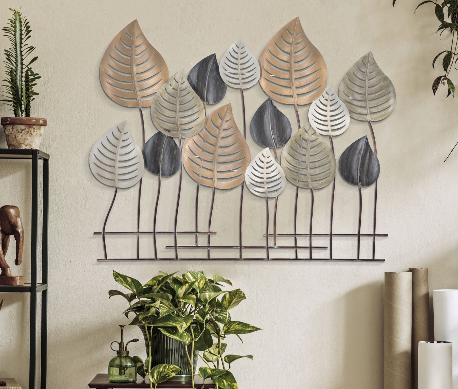 Panel metálico 3D Hoja y Naturaleza – Exótico adorno de pared
