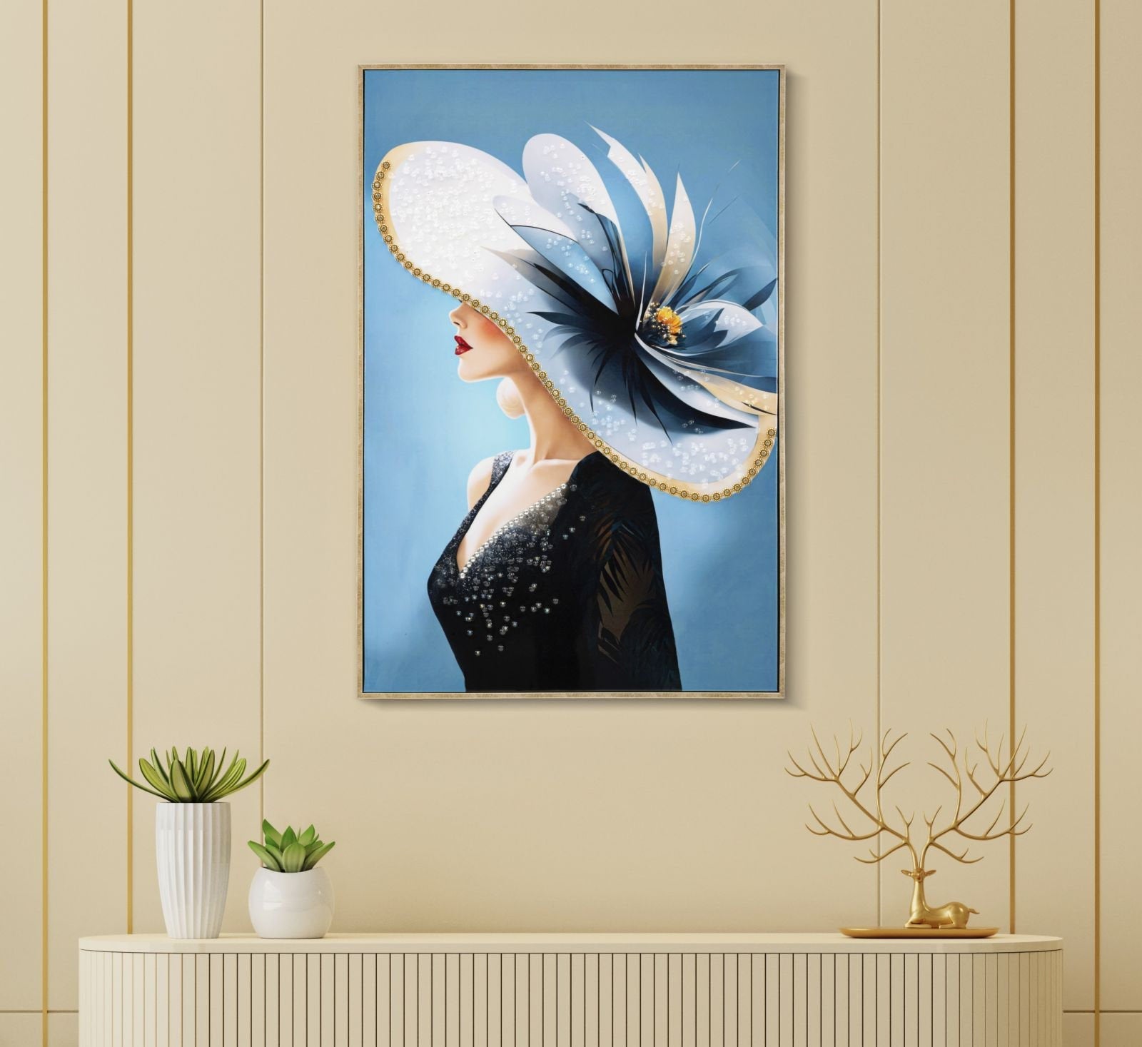 Retrato de moda Dori – Vestido negro y sombrero decorativo