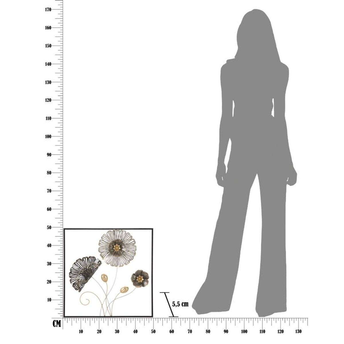 Panel de pared metálico con diseño de flores y hojas: elegante decoración artística en 3D