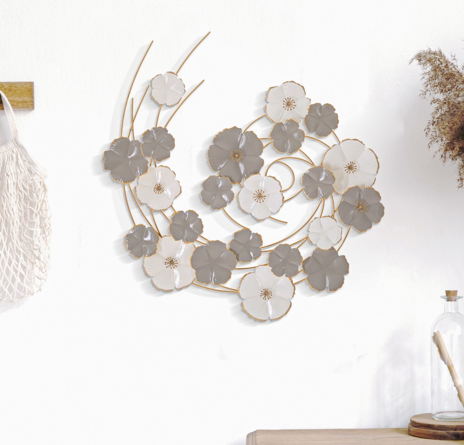 Panel 3D con remolinos florales: elegante arte decorativo para pared