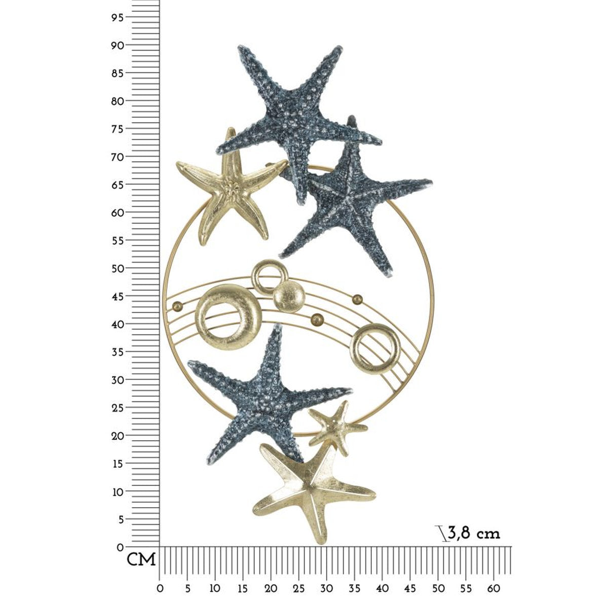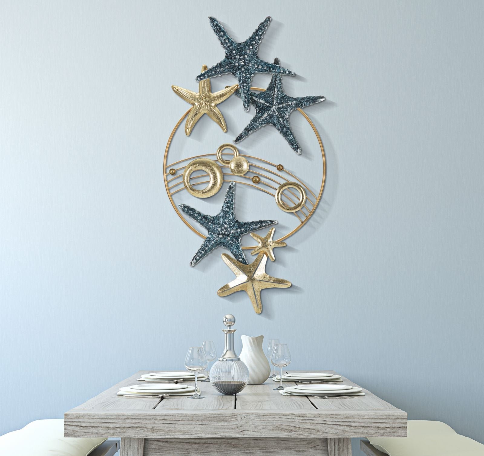 Decoración de pared de metal con forma de estrella de mar 3D con marco dorado