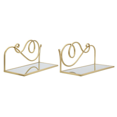 Par de estantes de pared de metal dorado con cristal espejado – Diseño redondeado
