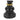 Escultura de caballo de ajedrez negro con detalles dorados