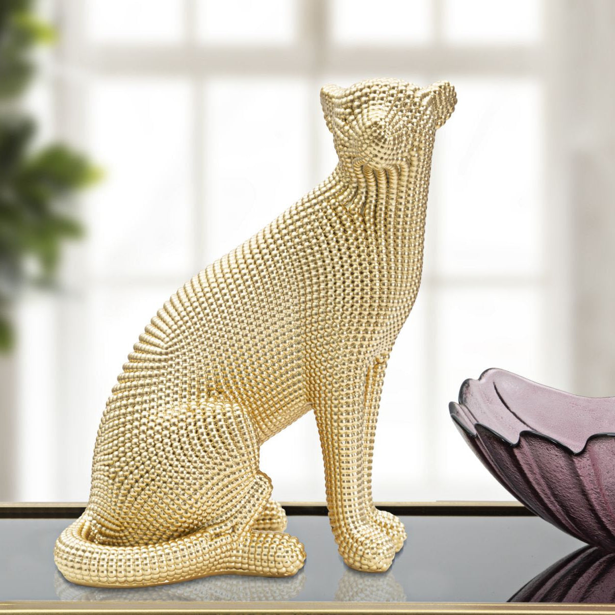 Estatua de leopardo dorado sentado – Decoración animal de lujo