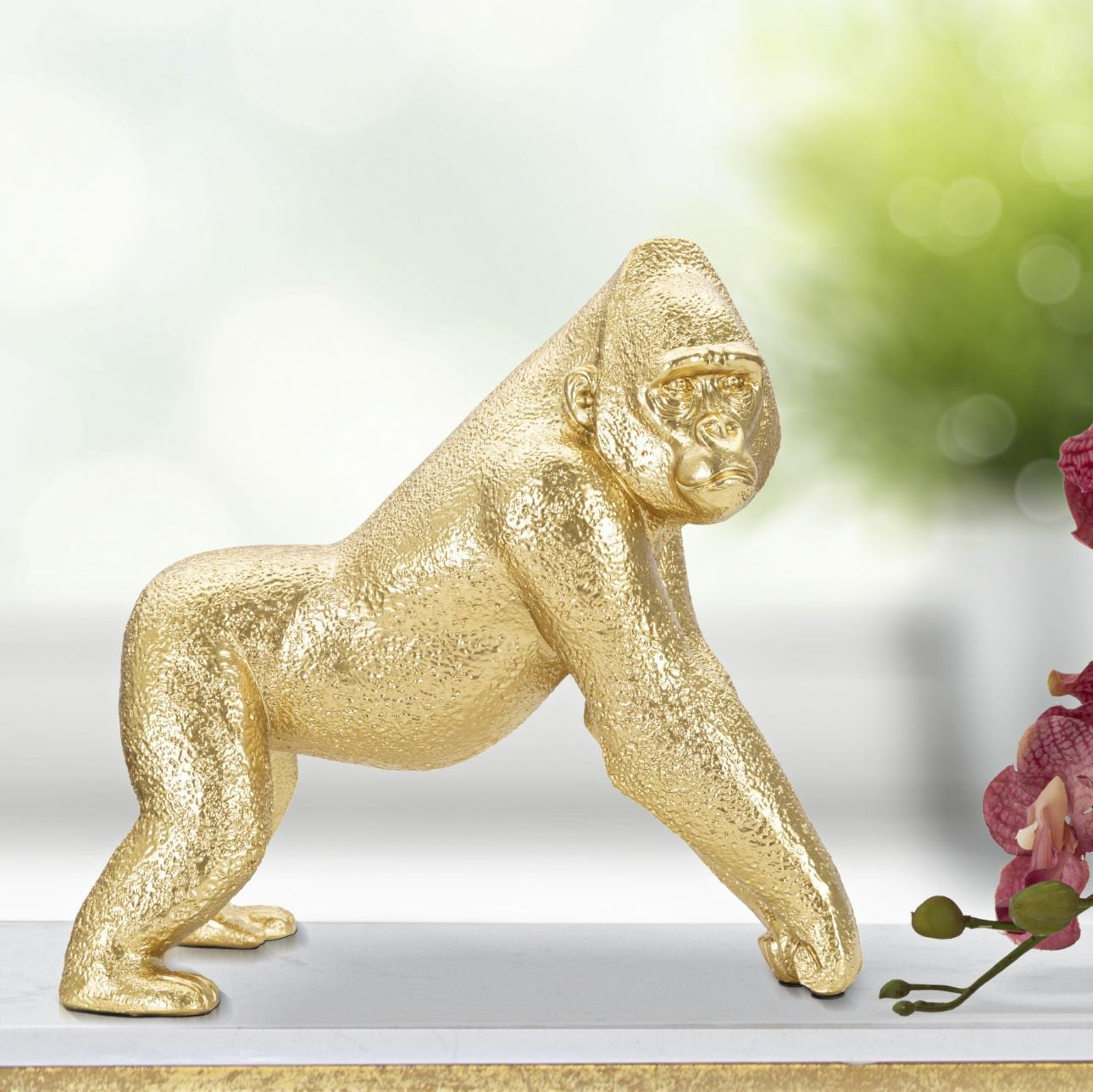 Estatua de Gorila Dorado – Decoración Moderna de Vida Silvestre