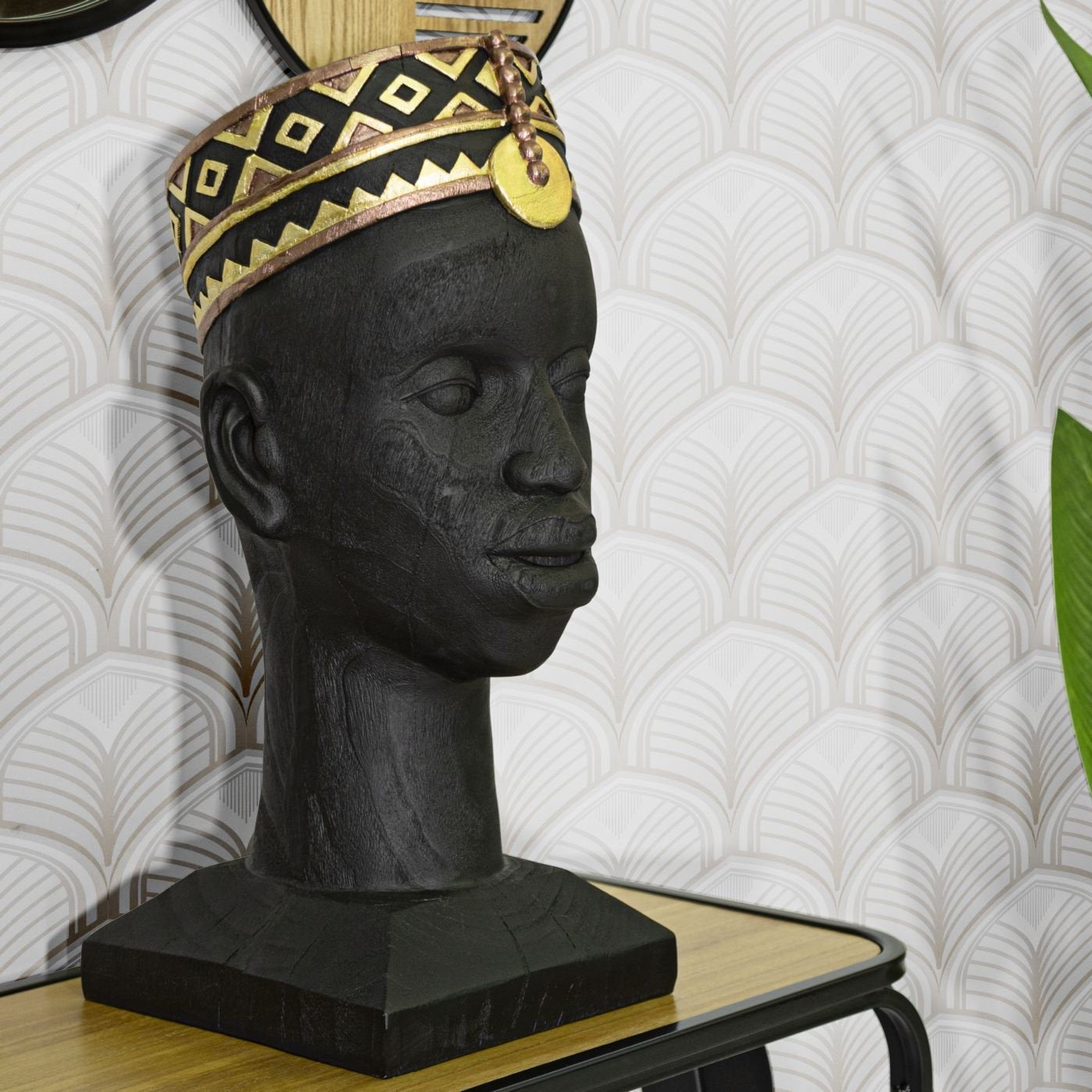 Escultura de cabeza de hombre africano estilo ébano