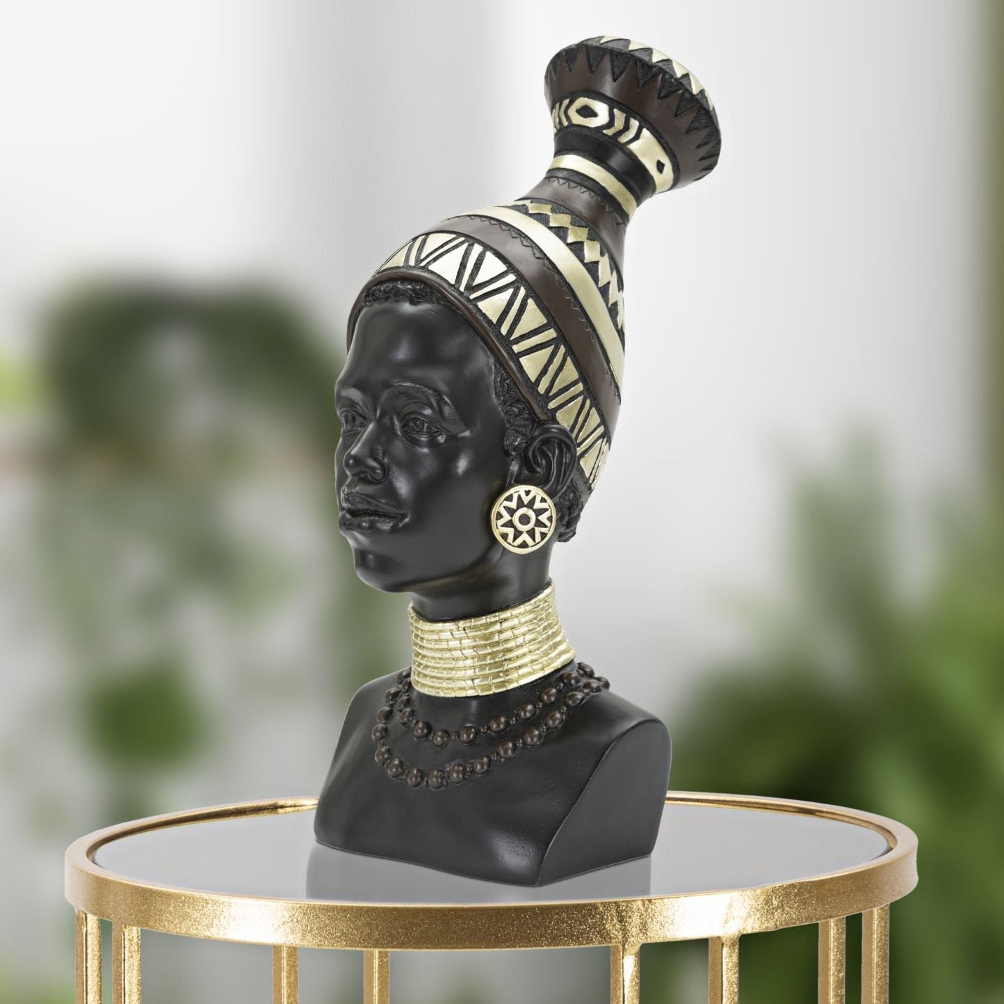 Busto femenino étnico con tocado tribal ornamental