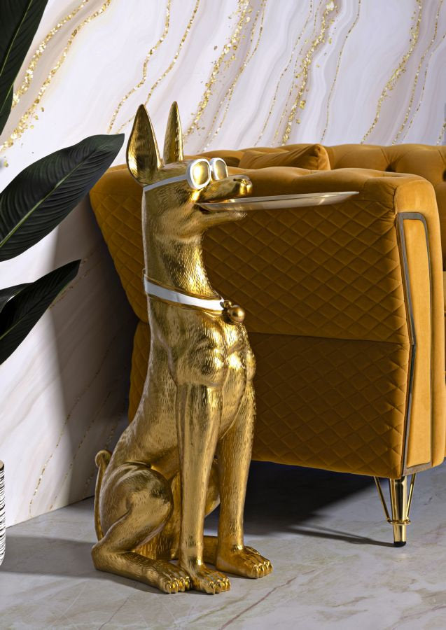 Pitbull musculoso con gafas de sol y bandeja – Decoración de lujo para perros