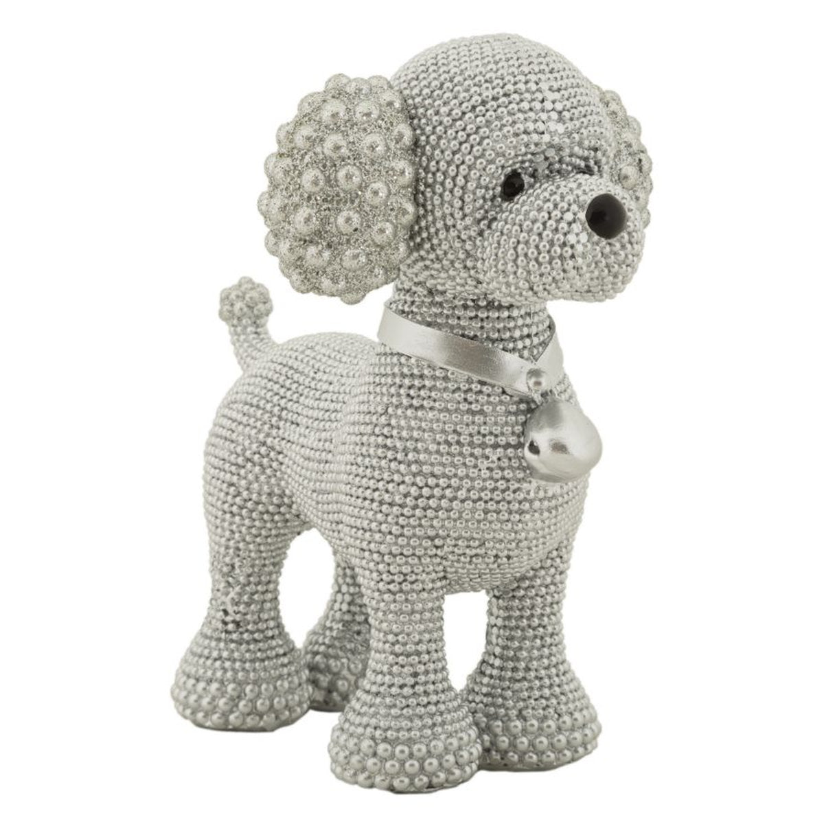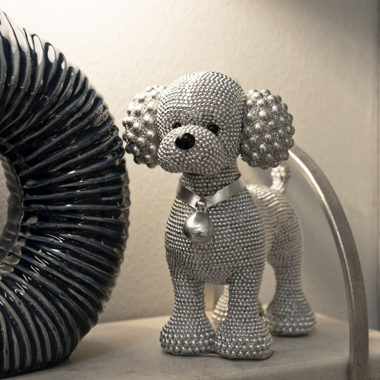 Figurita de caniche plateada refinada: elegante detalle decorativo