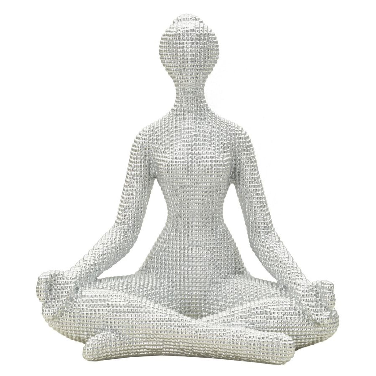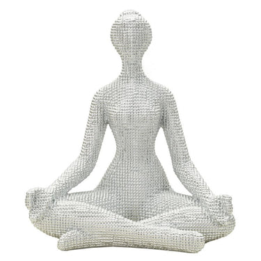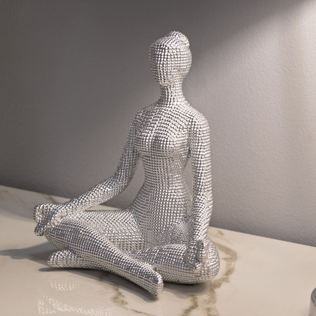 Escultura de mujer haciendo yoga en plata – Decoración serena y elegante para la meditación