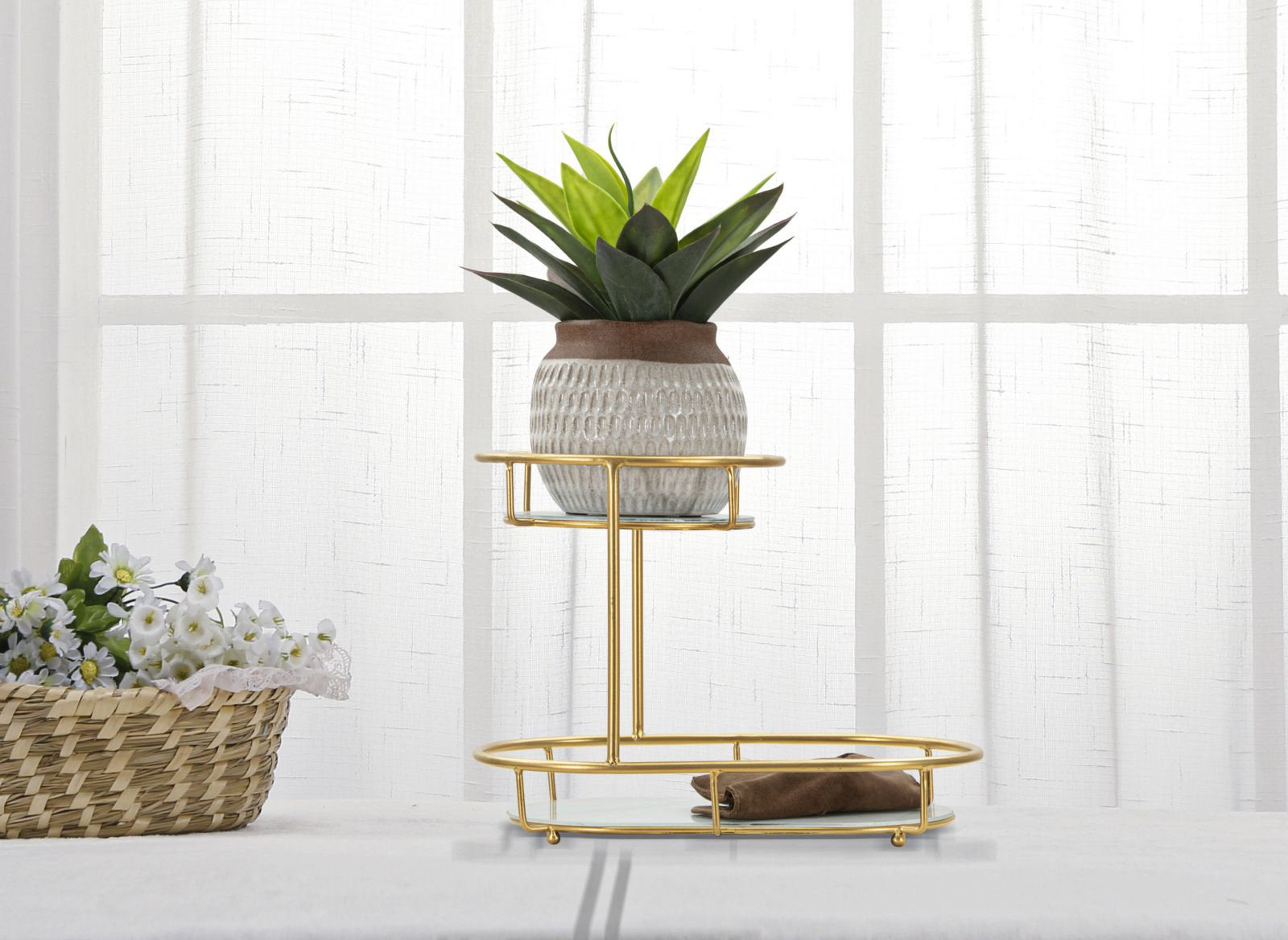 Bandeja dorada de dos niveles para monedas con tapas de cristal espejado
