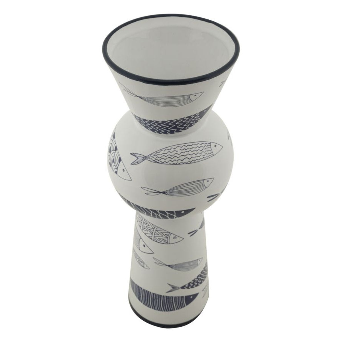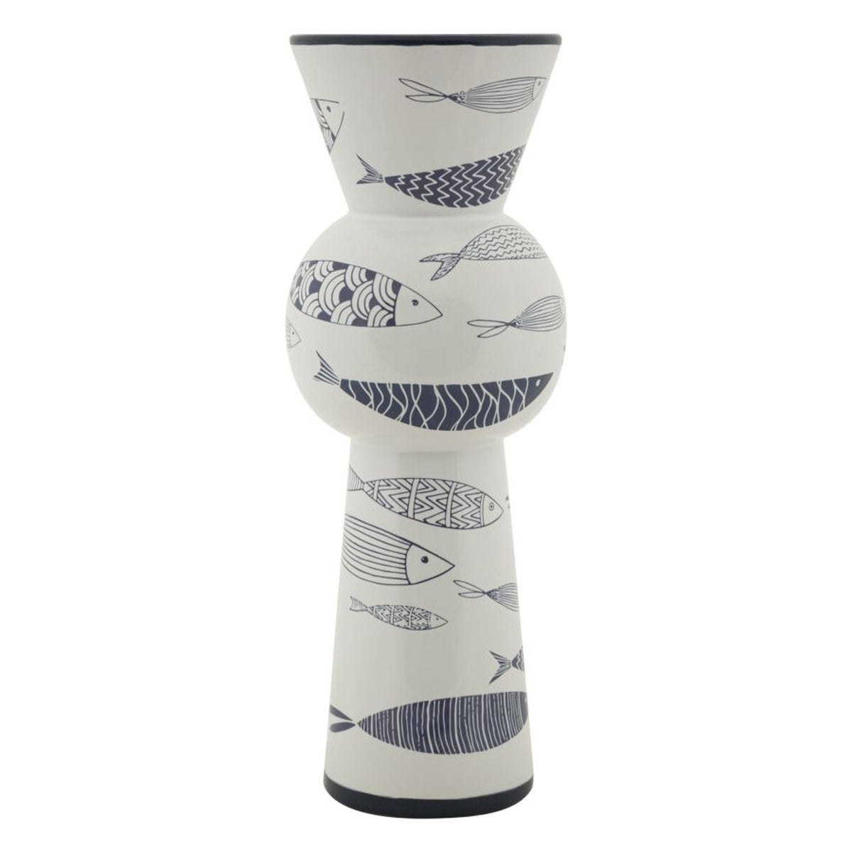 Jarrón de cerámica inspirado en el océano con decoraciones de peces