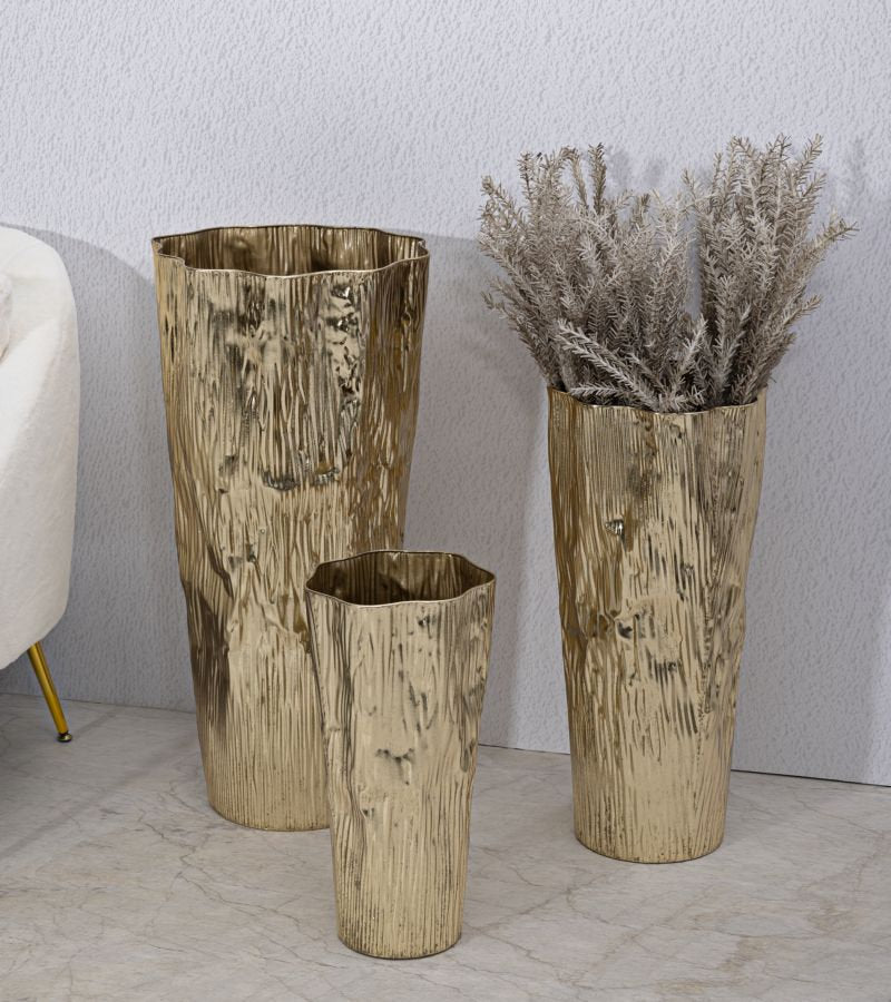 Juego de 3 elegantes jarrones dorados – Perfectos para plantas o decoración