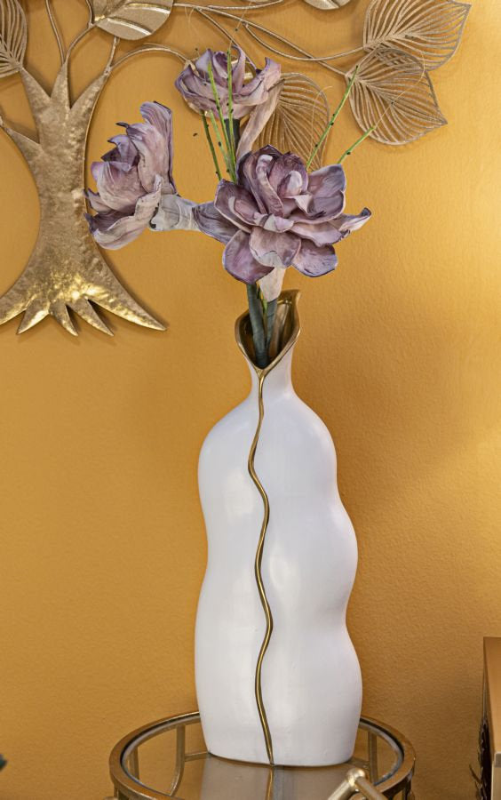 Jarrón sinuoso con detalles dorados – Diseño elegante y curvo