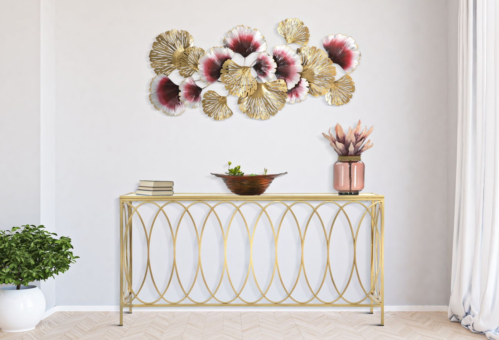 Consola rectangular dorada con tapa de espejo de mármol – Líneas geométricas