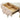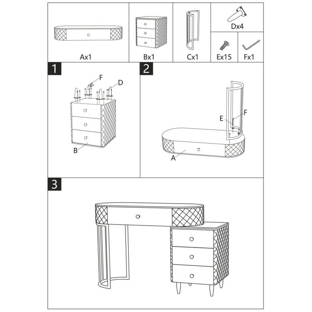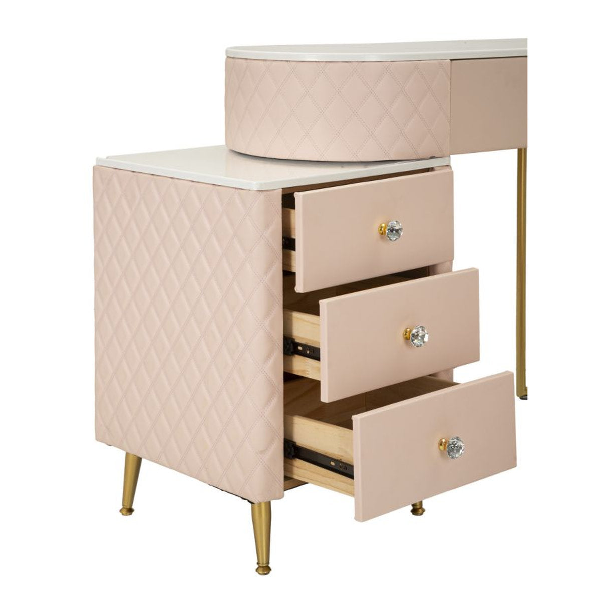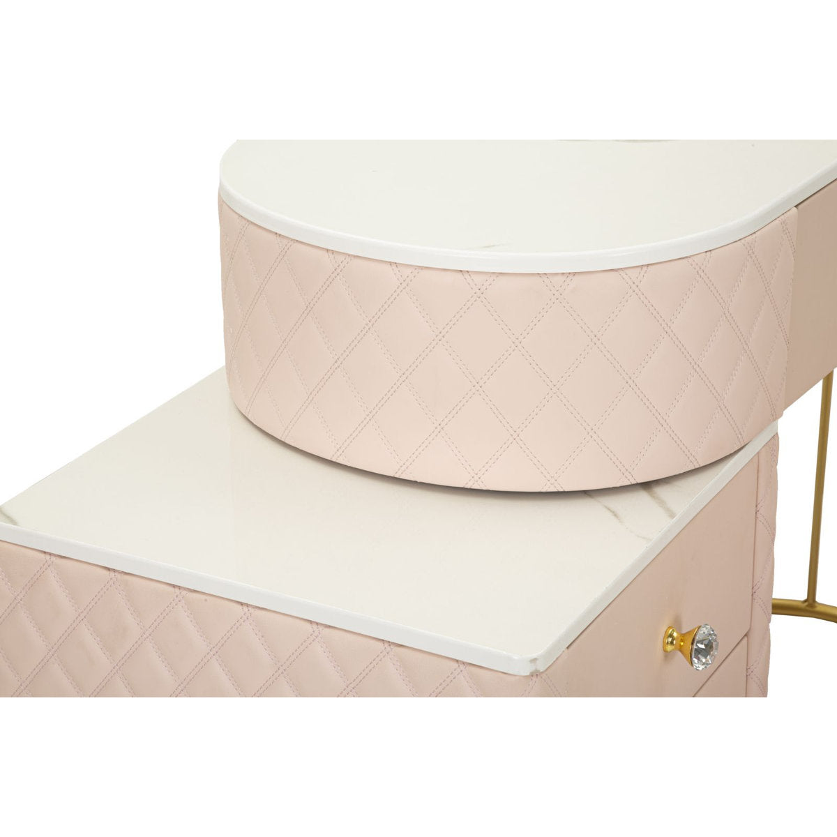 Tocador dorado acolchado de piel sintética con tapa de aspecto mármol y puf