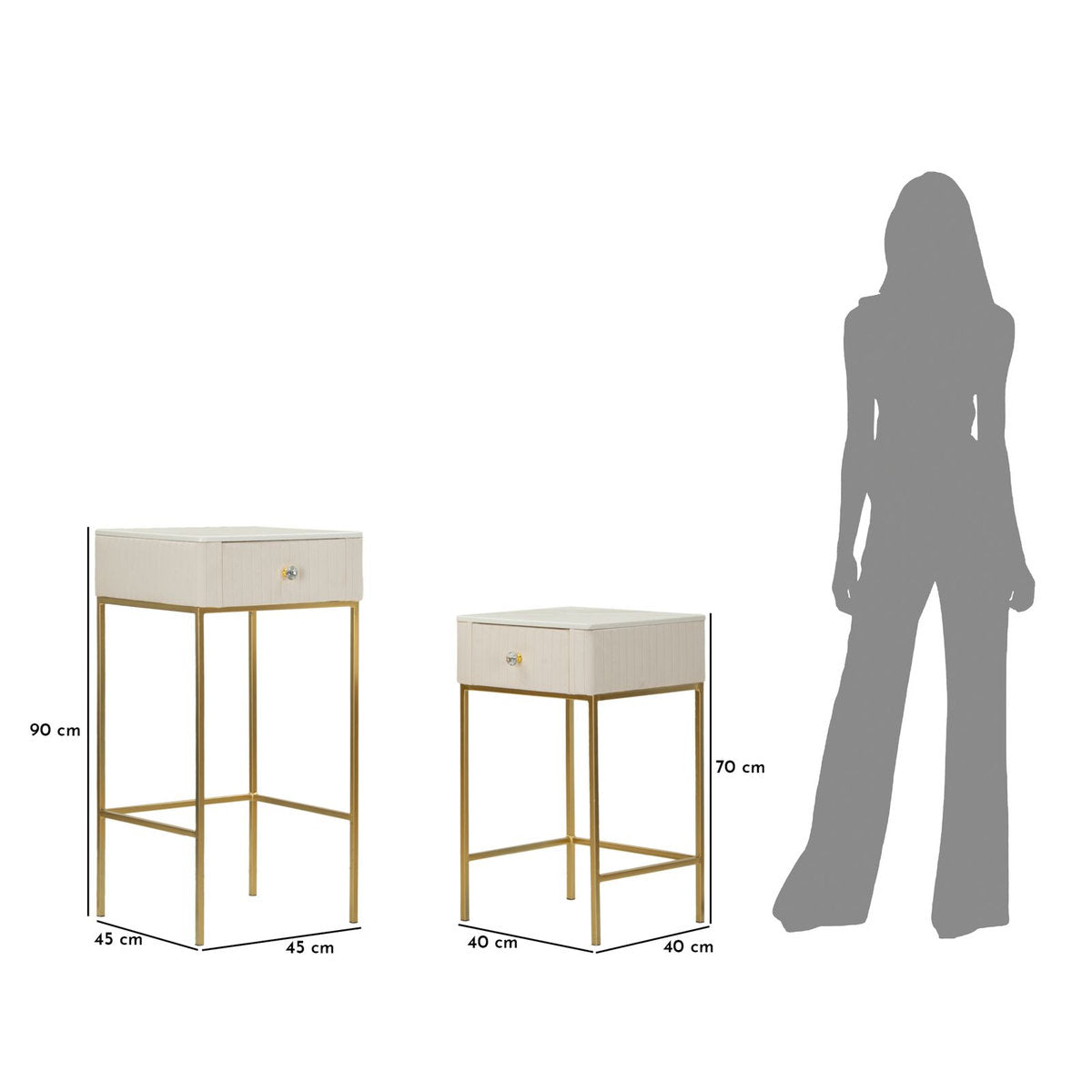 Mesas de centro altas y cuadradas para bodas con estructura dorada