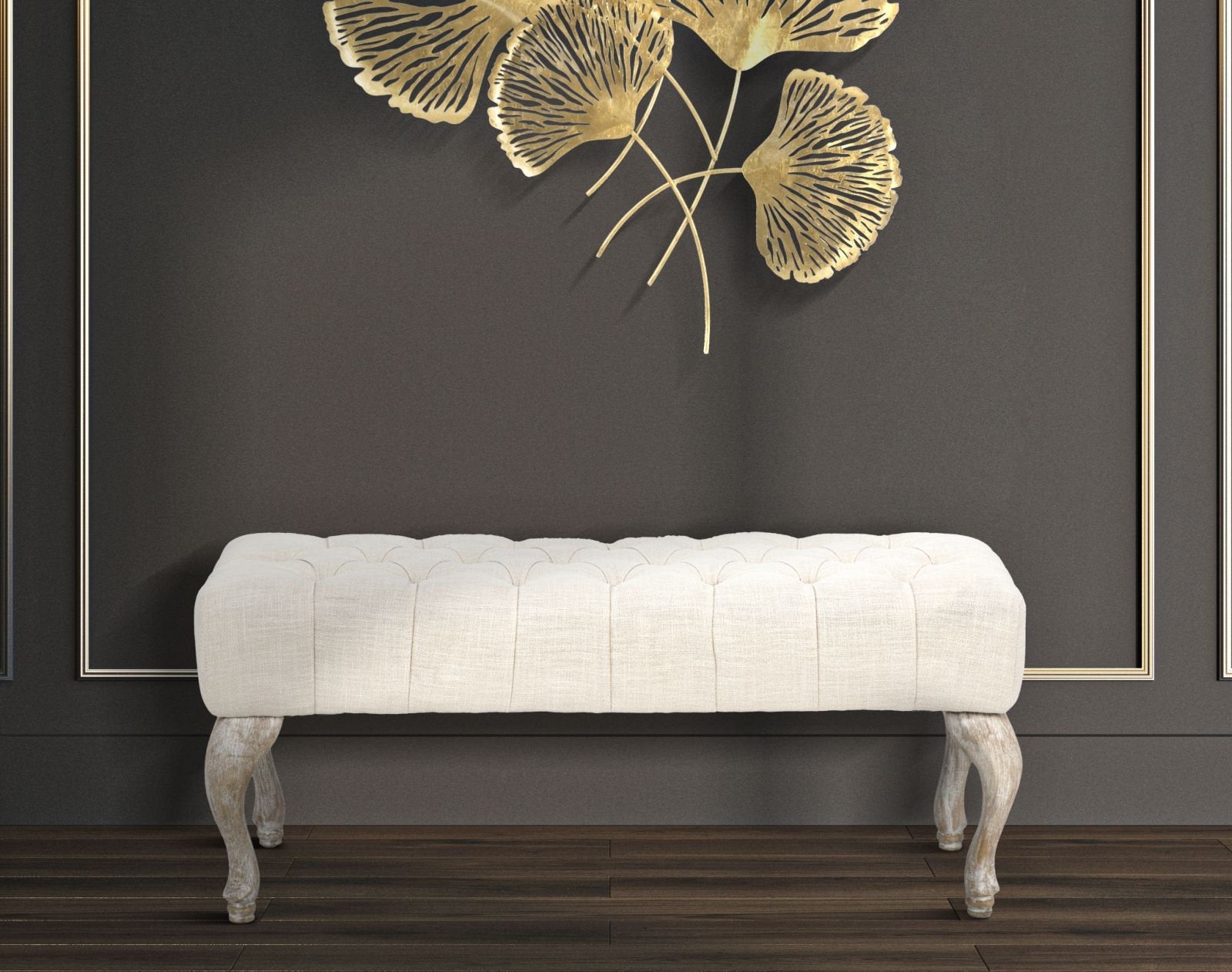 Banco de madera estilo shabby chic con tela color champán