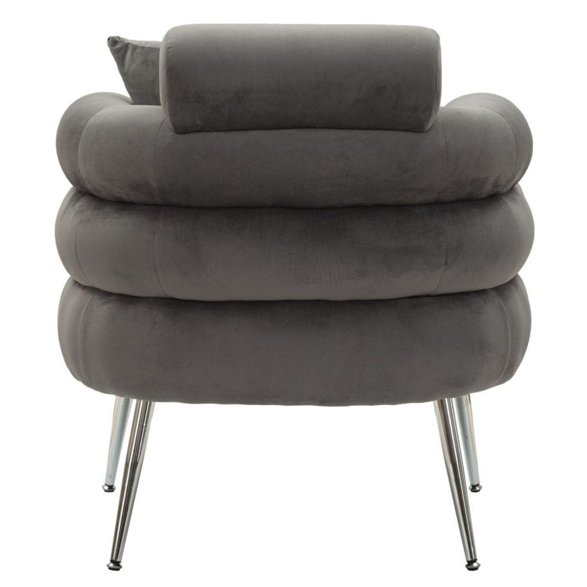 Sillón de terciopelo gris con reposacabezas y patas plateadas