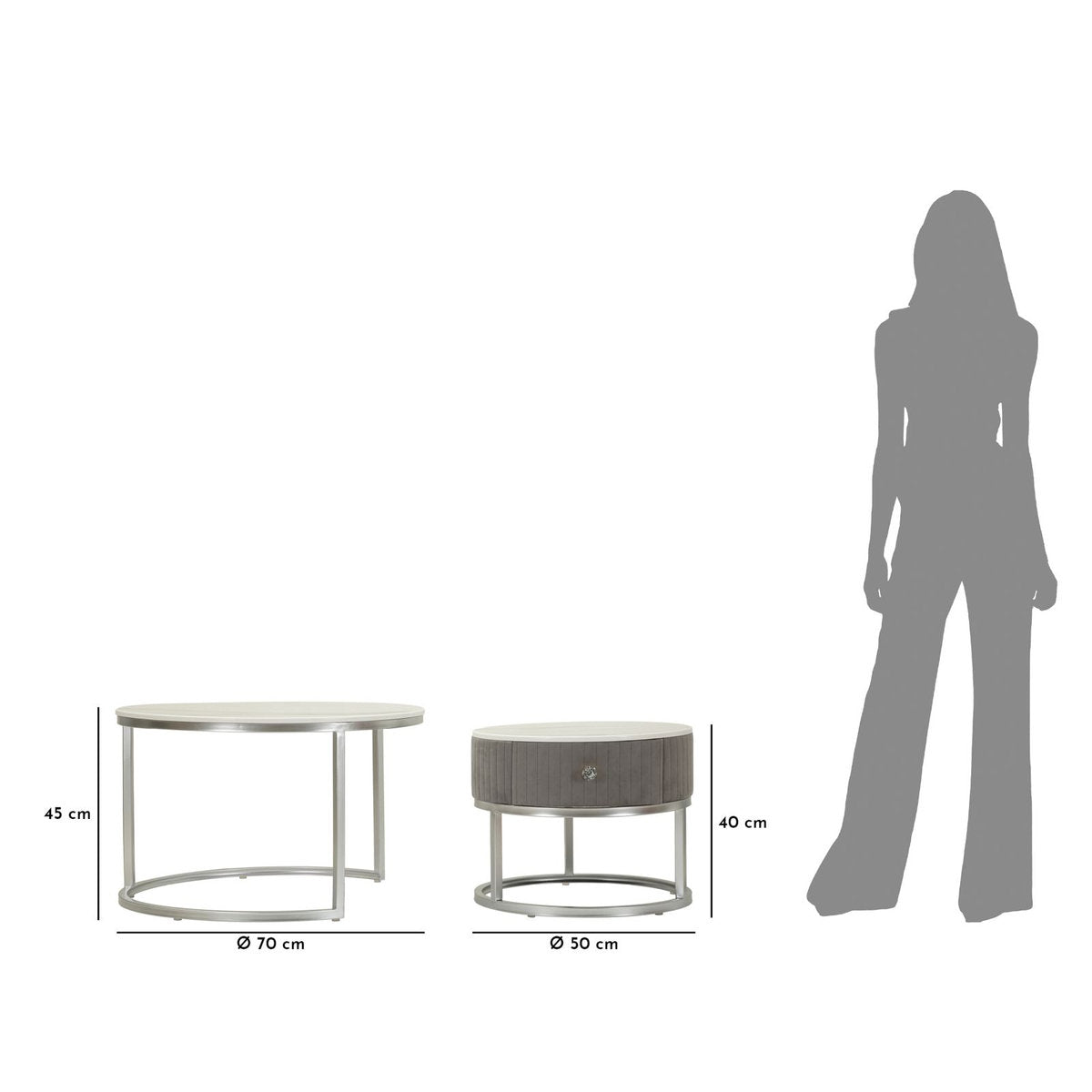 Mesas de centro Greys – Metal plateado con tablero efecto mármol