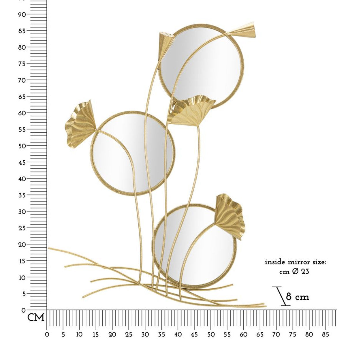 Juego de 3 espejos de pared redondos dorados con conectores en forma de hoja