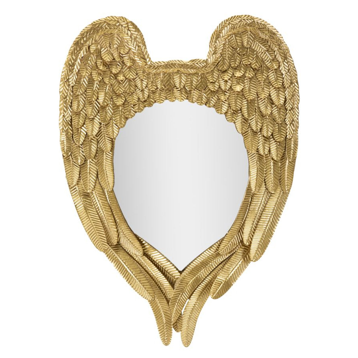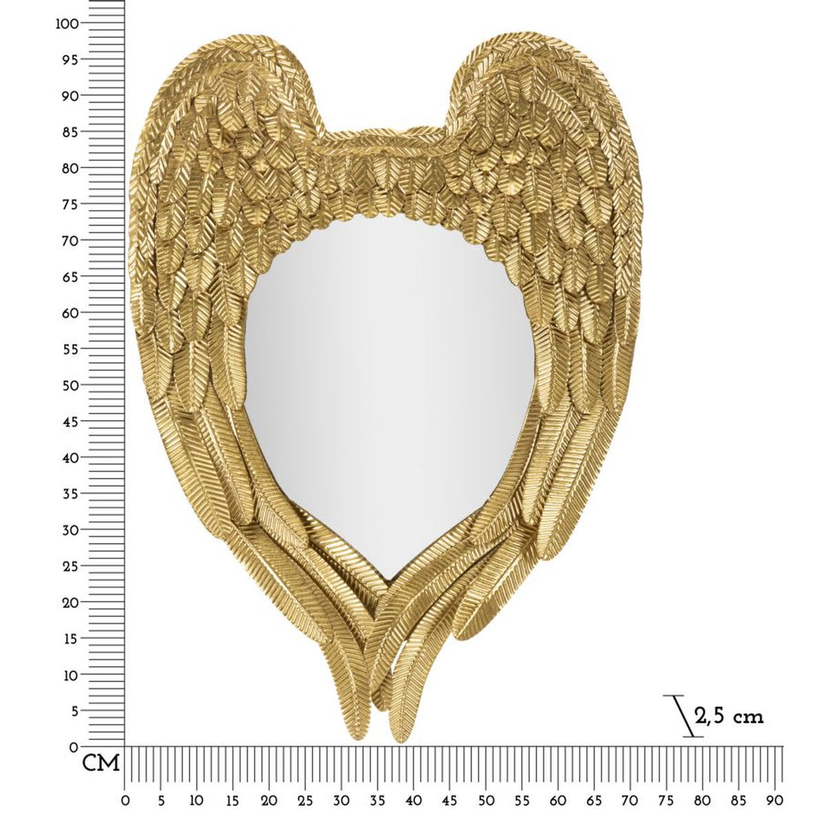 Espejo de pared dorado con forma de ala y elegante marco metálico