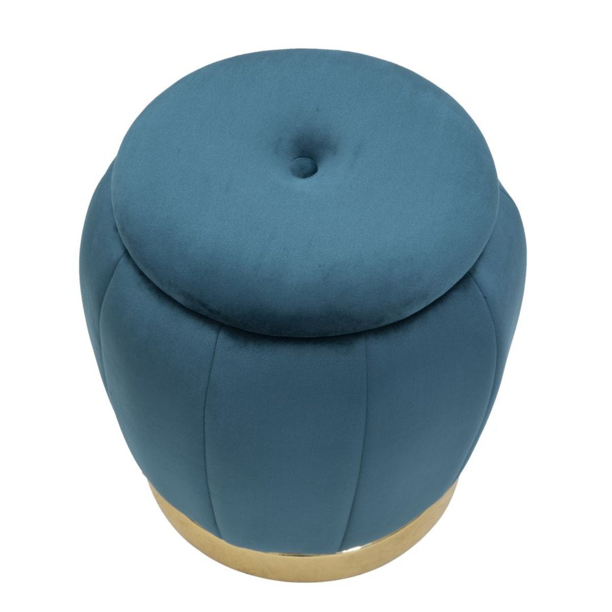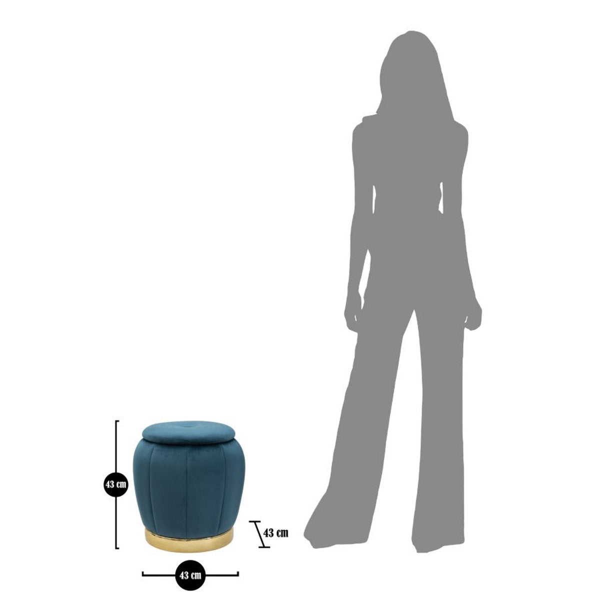Puf de almacenamiento de terciopelo azul verdoso con acabado dorado – Glamour de Hollywood