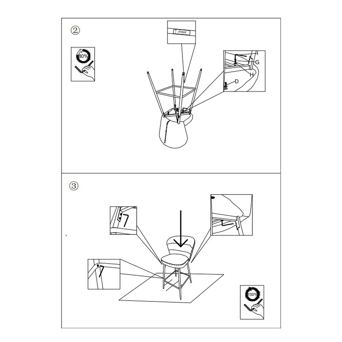 Juego de 2 taburetes de bar estilo años 70 con tapizado de tela y patas de metal negro