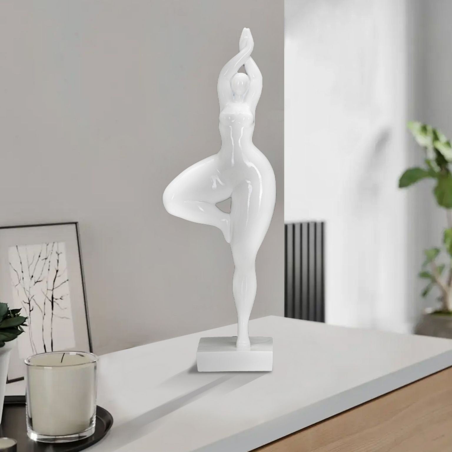 Estatua de mujer haciendo yoga blanca – Decoración serena para la meditación