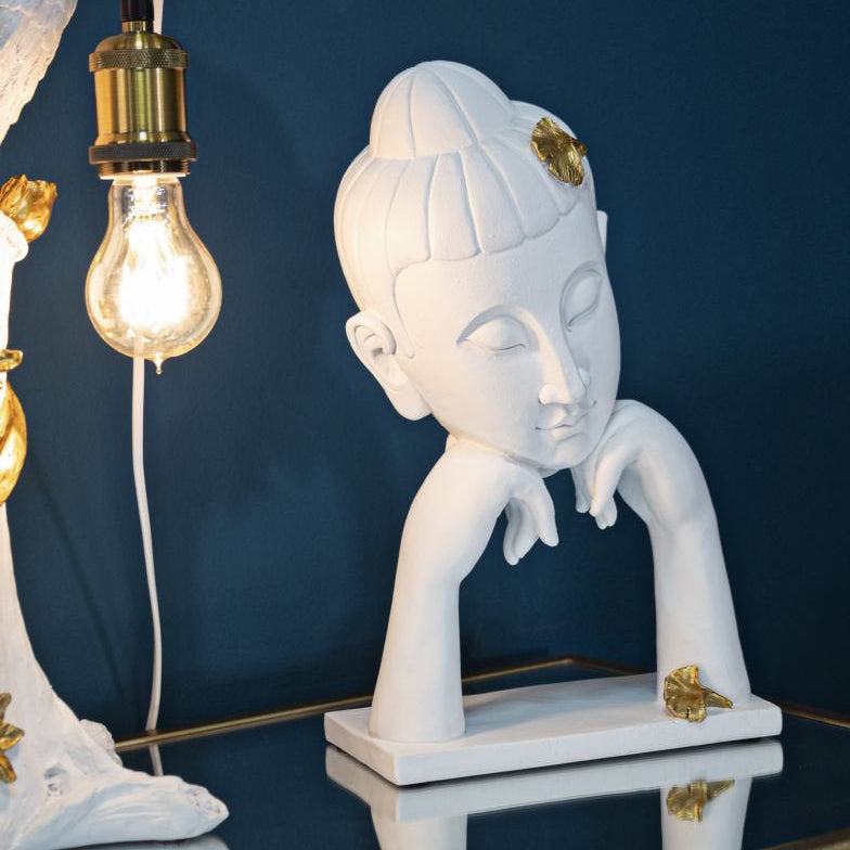 Escultura de cabeza de Buda con flores doradas: un detalle espiritual para el hogar
