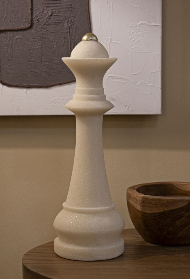 Reina de ajedrez elegante y luminosa con detalles dorados – Estatua decorativa