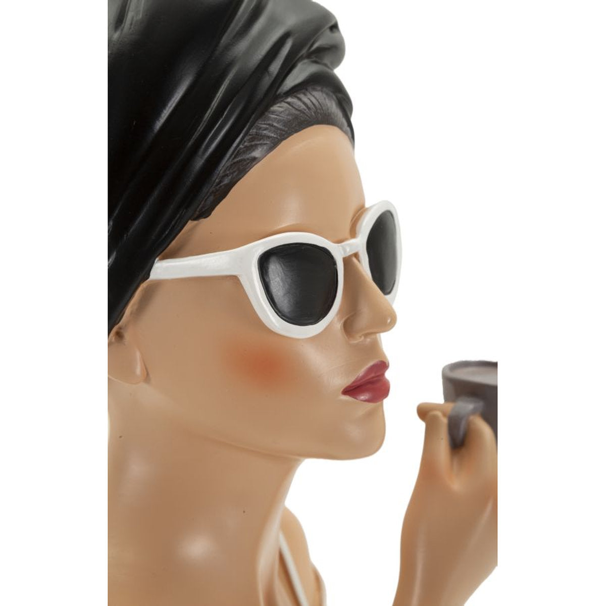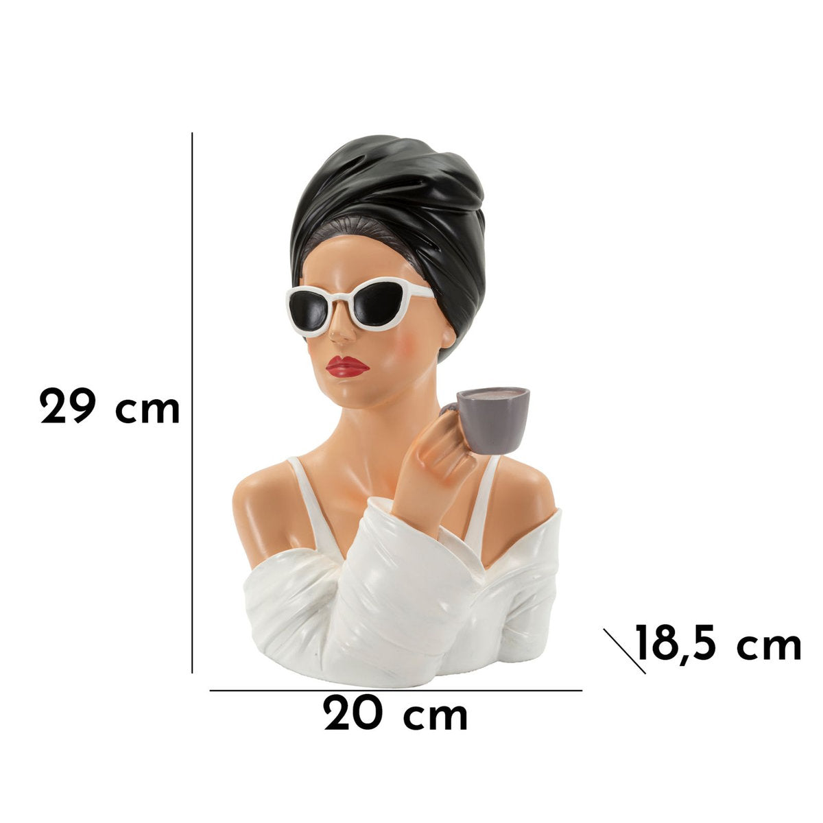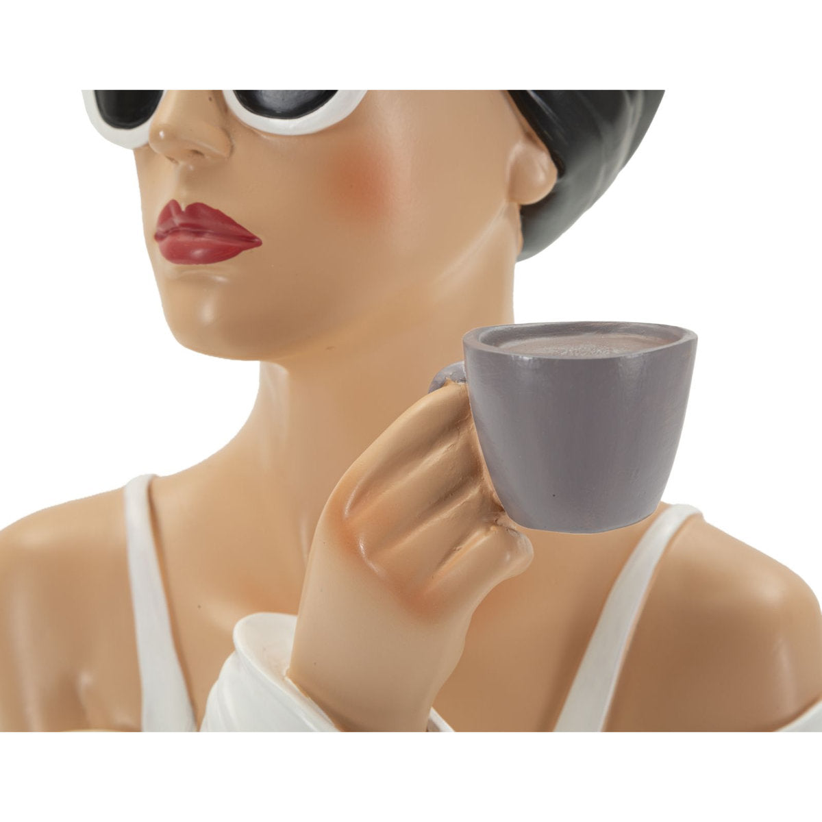 Escultura de una mujer parisina con café: decoración elegante para una mañana parisina