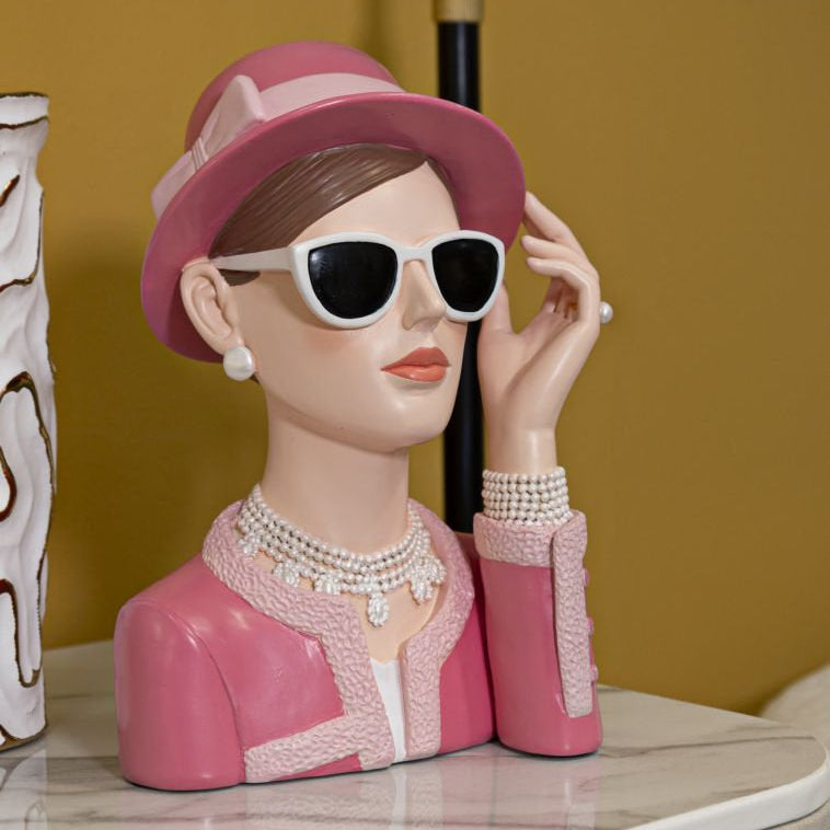 Elegante dama parisina de rosa – Estatua decorativa chic