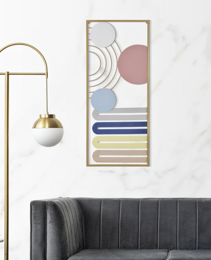 Arte mural geométrico circular multicolor de metal