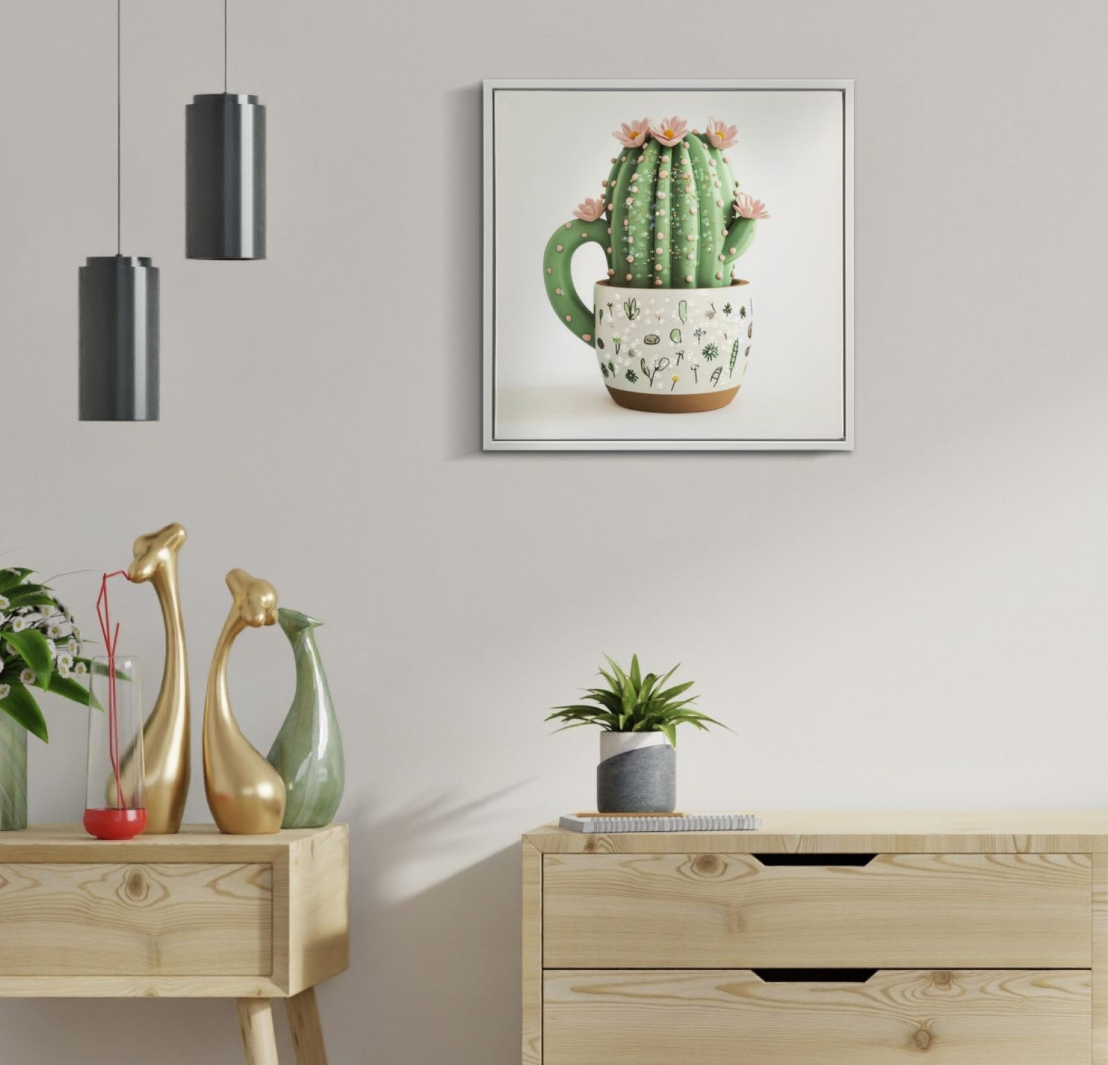 Lámina decorativa de cactus para pared: decoración verde delicada y alegre