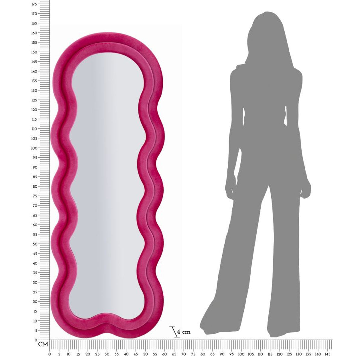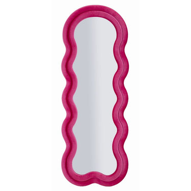 Espejo de pared ondulado de terciopelo fucsia para espacios glamurosos y modernos