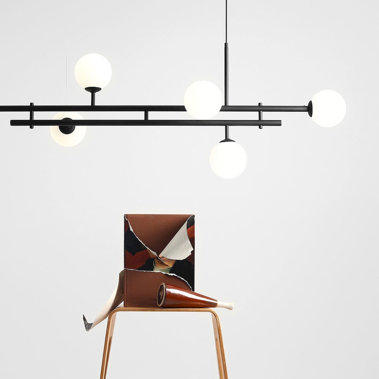 Lámpara de techo colgante lineal Aldex Harmony 6L, 151 cm de ancho, E14