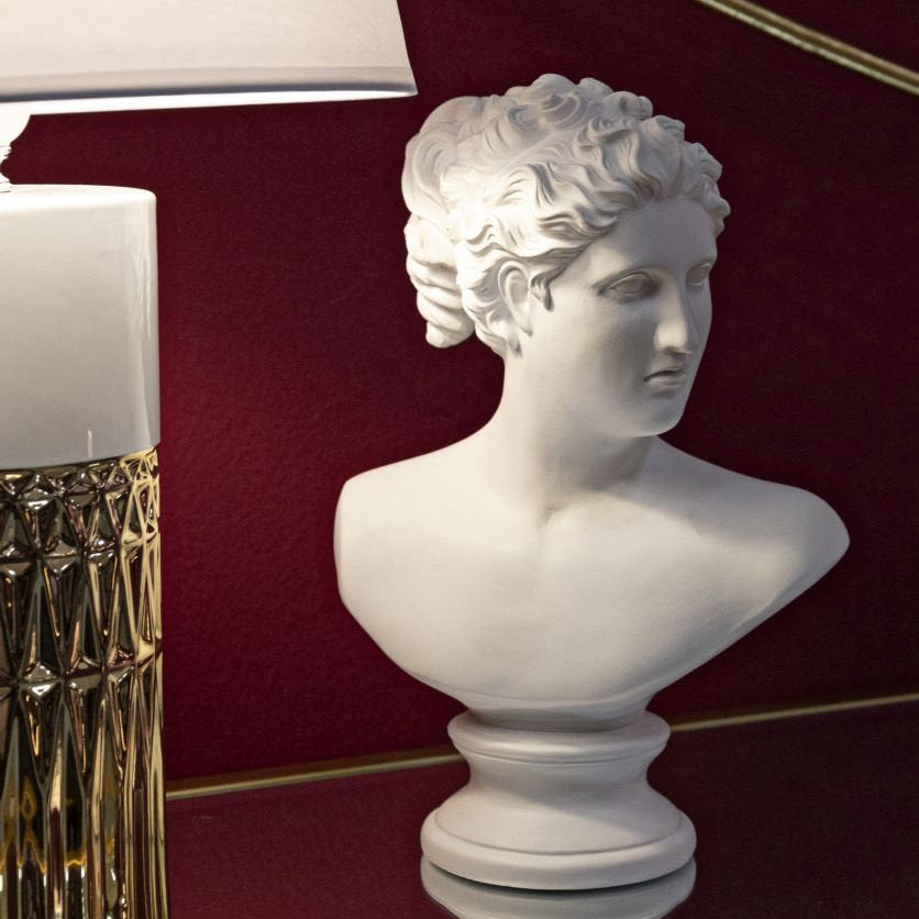 Escultura de cabeza femenina de poliresina blanca