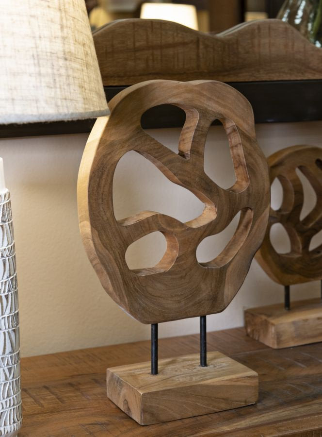 Escultura de teca con aberturas sinuosas – Arte moderno orgánico