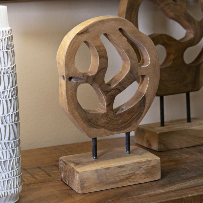 Escultura de teca reciclada con aberturas sinuosas – Arte moderno orgánico