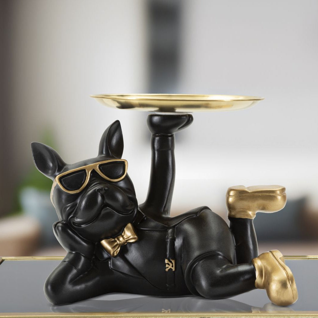 Elegante bandeja para perros con gafas de sol – Decoración con detalles dorados