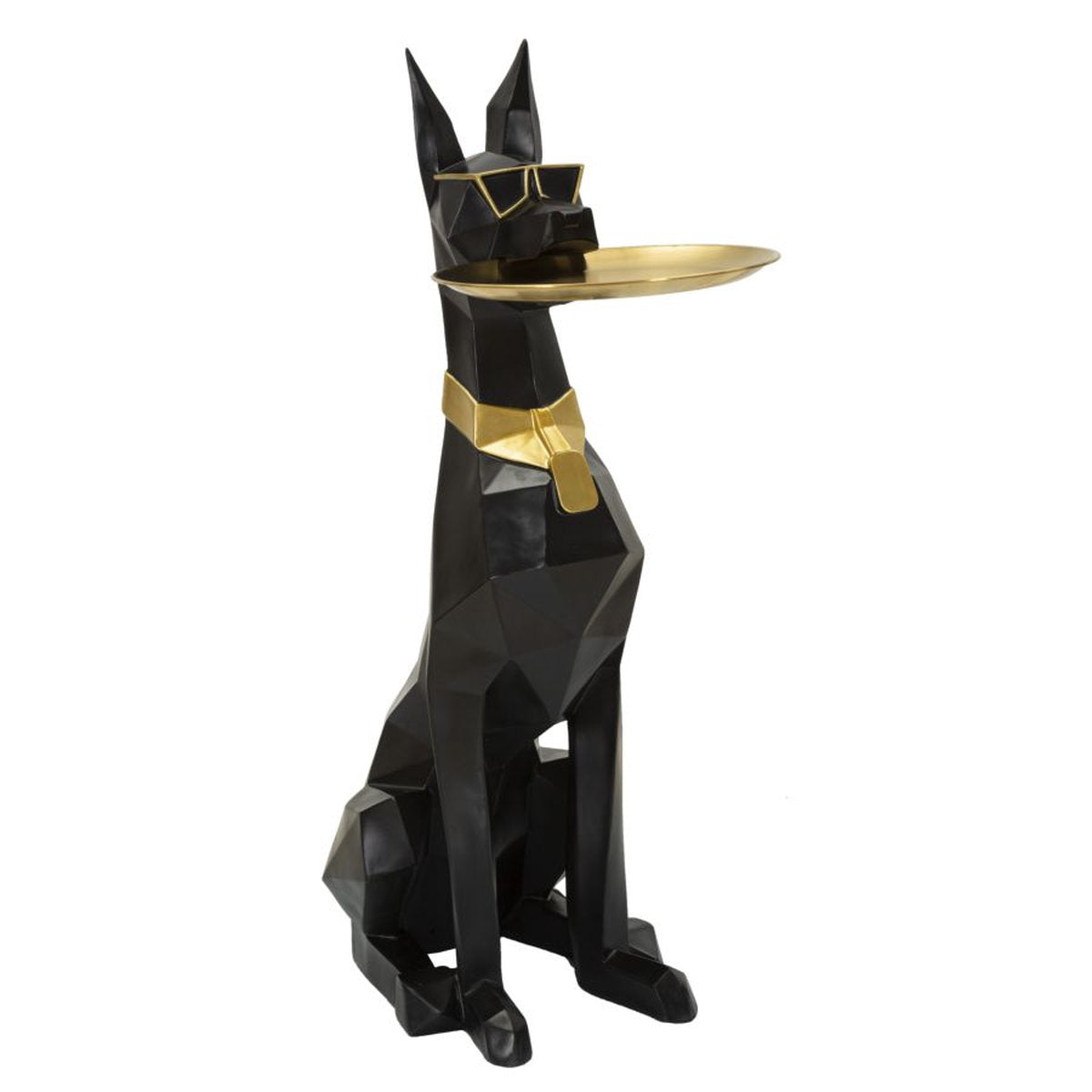 Pitbull estilo origami con bandeja dorada – Escultura moderna de perro