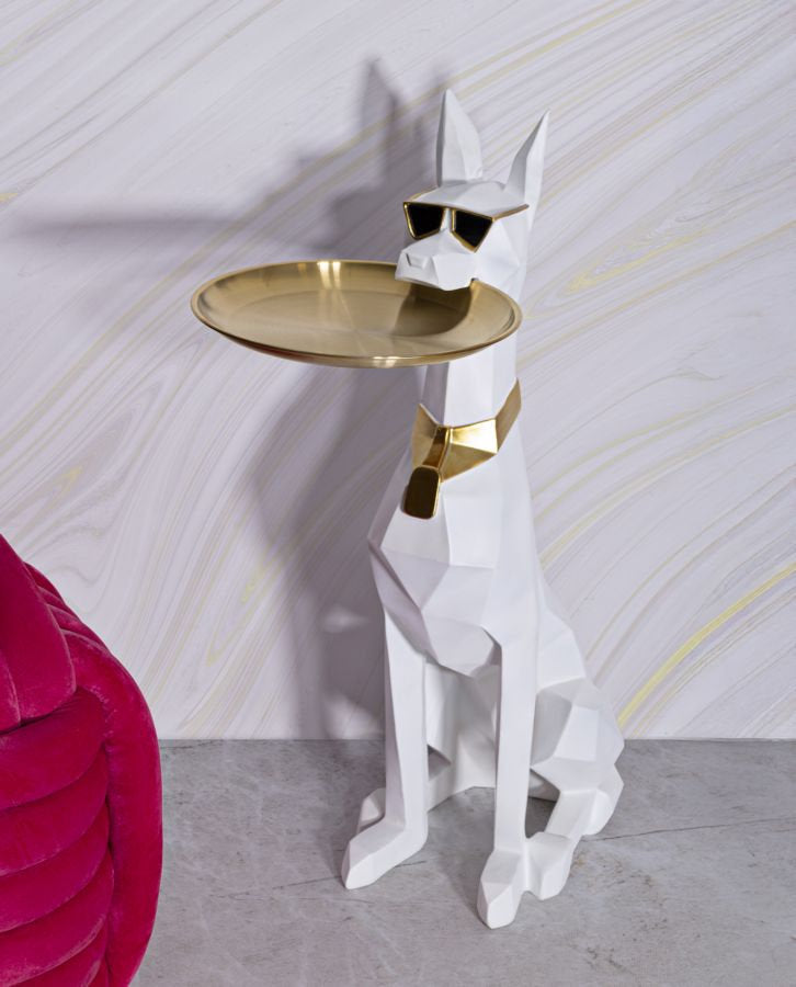 Soporte geométrico para bandejas con forma de pitbull – Decoración moderna y artística
