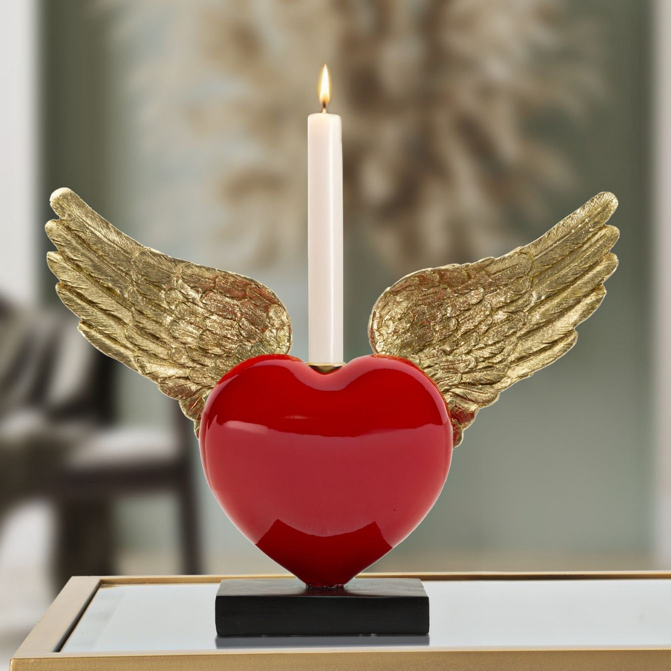 Portavelas Corazón con Alas – Decoración Simbólica Roja y Dorada