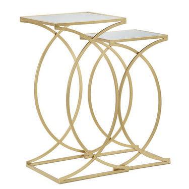 Par de mesas de centro de metal dorado con tapa espejada – Diseño sinuoso