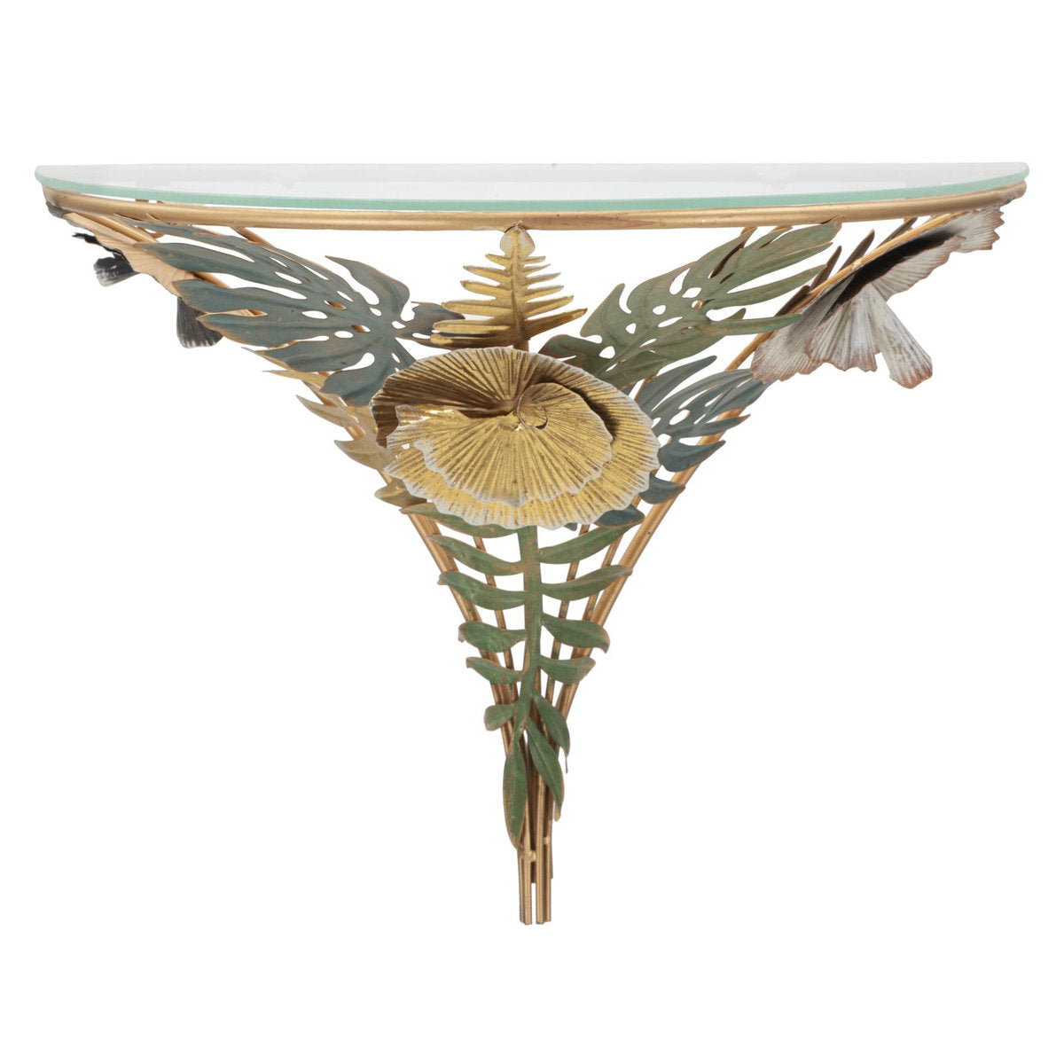 Mesita de noche semicircular de pared con hojas y flores de colores