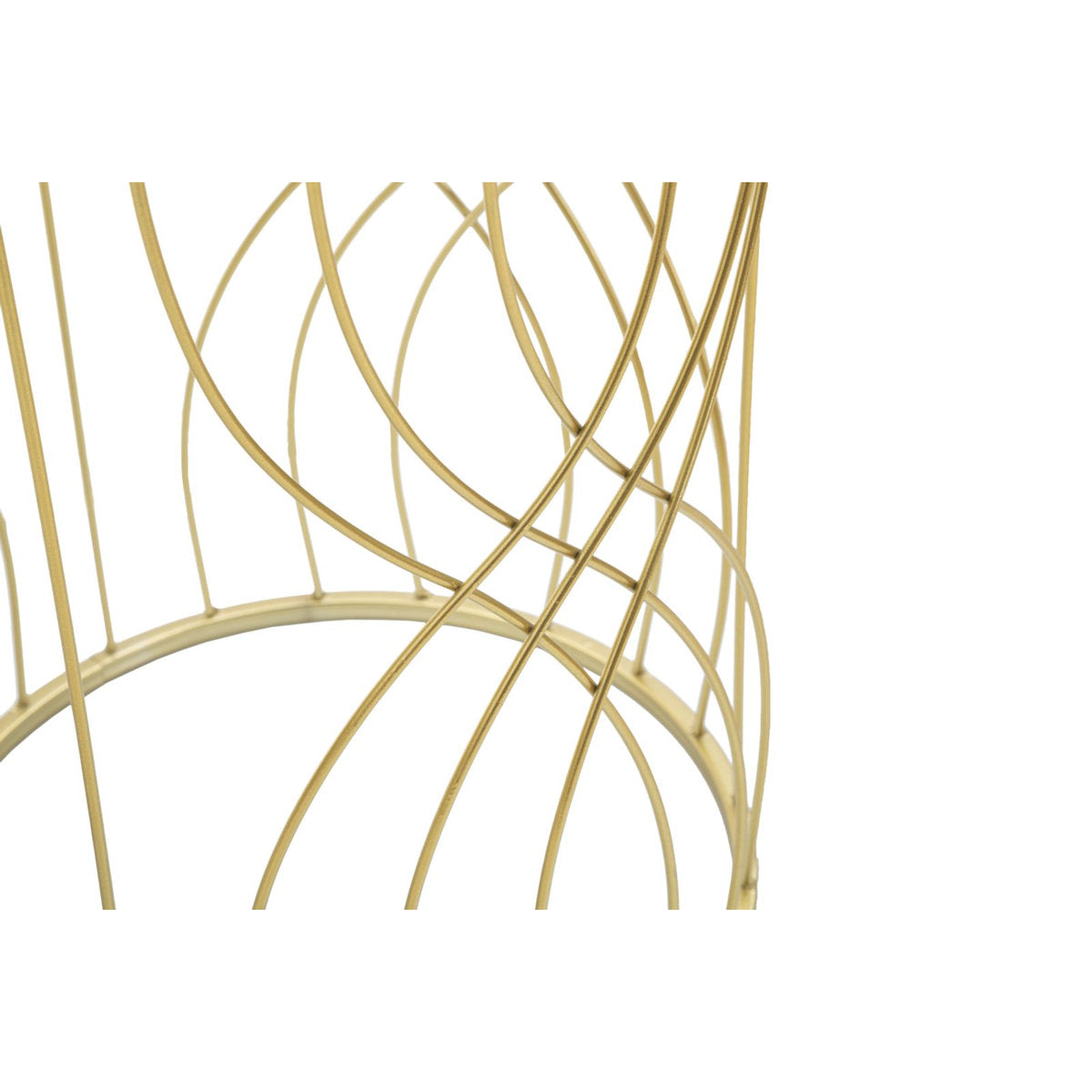 Par de mesitas redondas pequeñas de metal dorado con cristal espejado y diseño geométrico