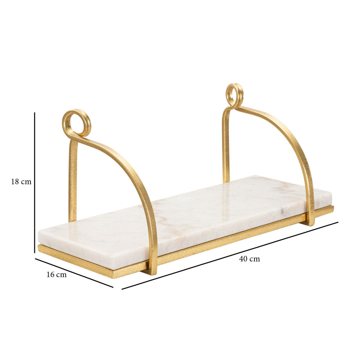 Estante de pared de metal dorado con tapa de mármol – Diseño minimalista