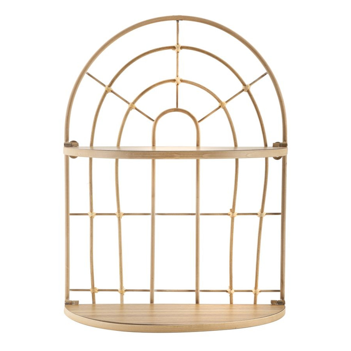 Estante de pared de metal con acabado de ratán y estantes redondeados